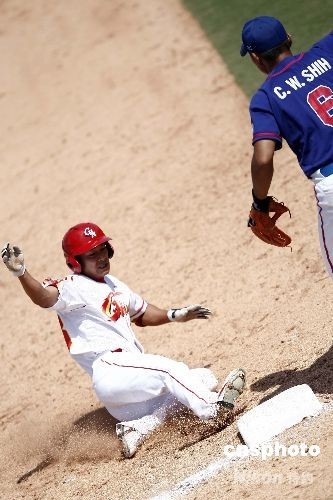 8月15日,北京奧運(yùn)會(huì)棒球男子預(yù)賽,中國(guó)隊(duì)與中華臺(tái)北隊(duì)的比賽在北京五棵松棒球場(chǎng)舉行,中國(guó)隊(duì)(白)最終在延長(zhǎng)局以8:7戰(zhàn)勝中華臺(tái)北隊(duì)。中新社發(fā) 盛佳鵬 攝