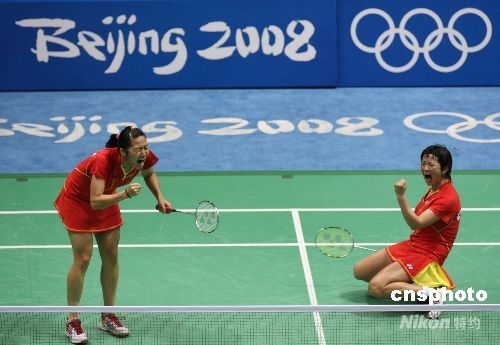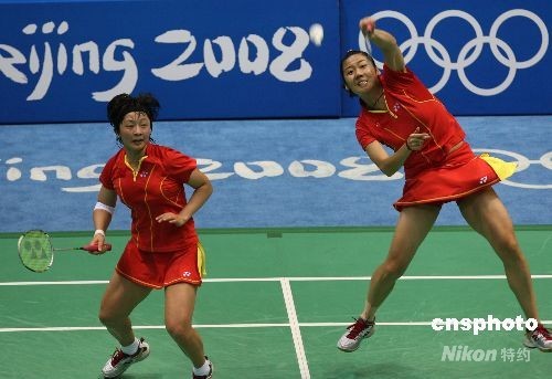 8月15日晚,中國組合魏軼力、張亞雯在北京奧運(yùn)會(huì)羽毛球女子雙打銅牌爭奪戰(zhàn)中以2比0戰(zhàn)勝日本組合前田美順、末綱聰子,奪得銅牌。中新社發(fā) 武仲林 攝