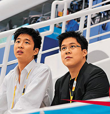 霍啟山、霍啟剛昨日現(xiàn)身水立方,為郭晶晶打氣。