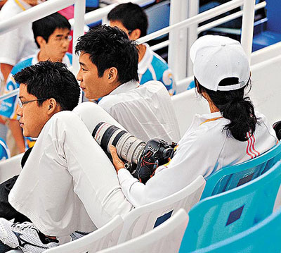 報道說,郭晶晶在第三跳前,霍啟剛才于水立方的觀眾席現(xiàn)身,相隔約一、兩分鐘后,朱玲玲和霍啟山也到場,三人并肩而坐。霍啟剛被全場記者舉機狂影,表現(xiàn)甚不自然,反而帶備Canon專業(yè)相機及長鏡的朱玲玲則投入其攝影世界,每逢郭晶晶和吳敏霞出場,她都即時舉機拍照。