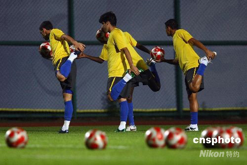 巴西國(guó)奧隊(duì)在訓(xùn)練中,像一群翩翩起舞的“小天鵝”。