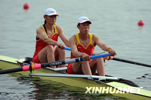8月16日,中國選手吳優(yōu)/高玉蘭在順義奧林匹克水上公園進(jìn)行的北京奧運(yùn)會賽艇女子雙人單槳A組決賽中奪得亞軍。新華社記者王雷攝