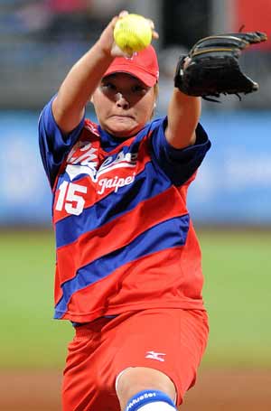 北京奧運女子壘球比賽中華臺北隊于14日晚間出戰(zhàn)委內(nèi)瑞拉隊,投手闕明慧擔任救援,成功封鎖對手打擊。(下圖)