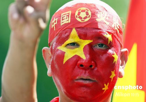 8月16日,一名觀眾盛裝出席北京奧運(yùn)會賽艇比賽,為中國隊(duì)加油。中新社發(fā) 武仲林 攝