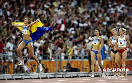 8月16日晚,經(jīng)過兩天的激烈角逐,田徑女子七項(xiàng)全能比賽的最終結(jié)果在北京國(guó)家體育場(chǎng)產(chǎn)生,烏克蘭選手納塔利婭·多布林斯卡以總分6733分獲得冠軍,另一位烏克蘭選手柳德米拉·布隆斯卡以總分6700分獲得亞軍,美國(guó)選手海利亞絲·方丹以總分6619分名列第三。圖為納塔利婭·多布林斯卡慶祝奪冠。中新社發(fā) 盛佳鵬 攝