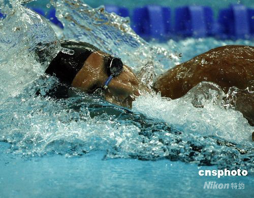 8月17日,北京奧運會男子1500米自由泳決賽中,來自突尼斯的邁盧利擊敗澳大利亞名將哈克特,以14分40秒84獲得金牌。 這是突尼斯從1960年第一次參加奧運會以來獲得的第一枚奧運會游泳金牌。 中新社發(fā) 杜洋 攝
