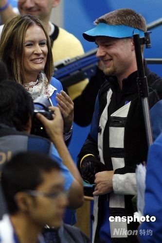 8月17日,男子50米步槍三種姿勢(shì)決賽在北京射擊館進(jìn)行,中國(guó)選手邱健奪得金牌。13:52分,男子步槍三姿第10輪邱健驚天逆轉(zhuǎn)得金牌。本來(lái)以為得到銀牌已經(jīng)是最好的結(jié)果,一直領(lǐng)先的美國(guó)選手埃蒙斯雖沒(méi)有像上一屆奧運(yùn)會(huì)一樣脫靶,但是他最后一槍居然只打出了4.4環(huán),埃蒙斯又一次與奧運(yùn)金牌夢(mèng)想失之交臂。中新社發(fā) 盛佳鵬 攝