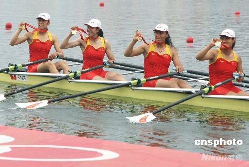 圖:中國“金花”獲得女子四人雙槳冠軍