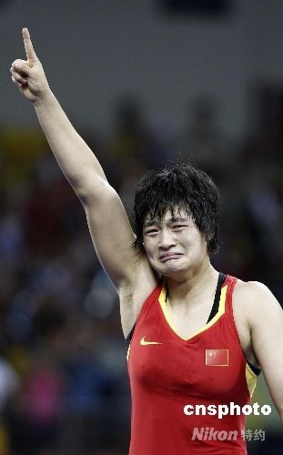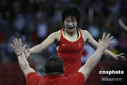 8月17日,北京奧運(yùn)會女子自由式摔跤72公斤級決賽中,中國選手王嬌以總分8比3擊敗保加利亞名將茲拉特娃,為中國奪得本屆奧運(yùn)會第30枚金牌。中新社發(fā) 盛佳鵬 攝