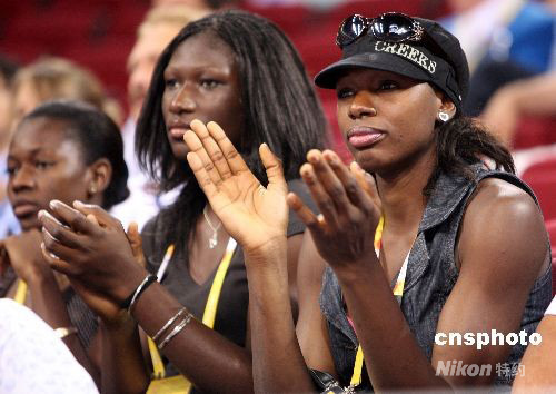 奧運會男籃小組賽最后一輪8月18日打響,此前四戰(zhàn)四勝的美國“夢八隊”以106比57橫掃德國隊。昨天剛剛獲得女子網(wǎng)球雙打冠軍的威廉姆斯姐妹到場為“夢八隊”加油。中新社發(fā) 任晨鳴 攝