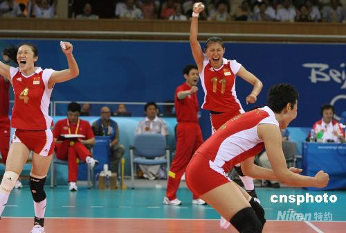 圖:中國女排擊敗俄羅斯隊晉級四強