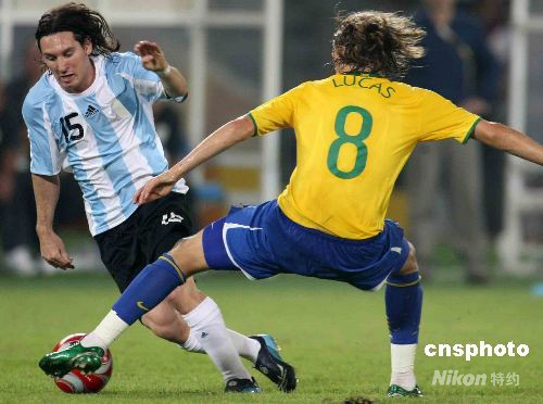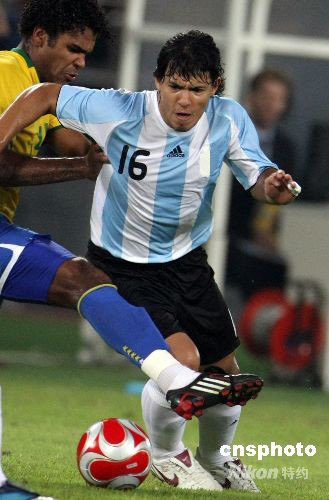 8月19日晚,北京奧運會男足第二場半決賽在北京工人體育場舉行,阿根廷、巴西兩支強隊提前相遇,最終阿根廷隊以3比0完勝巴西隊,進入決賽。 中新社發(fā) 任晨鳴 攝