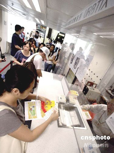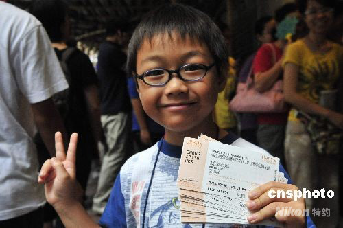 八月二十一日,中國奧運金牌精英訪港表演門票開始發(fā)售,香港市民通宵在售票點排隊購票。入場票在今早十時開始發(fā)售,圖為市民踴躍購買。