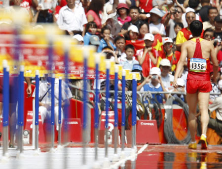 九萬名因劉翔之名而來觀戰(zhàn)的現場觀眾幾乎都不敢相信自己的眼睛,奧運志愿者李晶正是這九萬分之一,“他跪在地上,輕拍著右腳裸。過了一會兒,他一瘸一拐地走到起跑線附近,右腳根沒有著地。”
