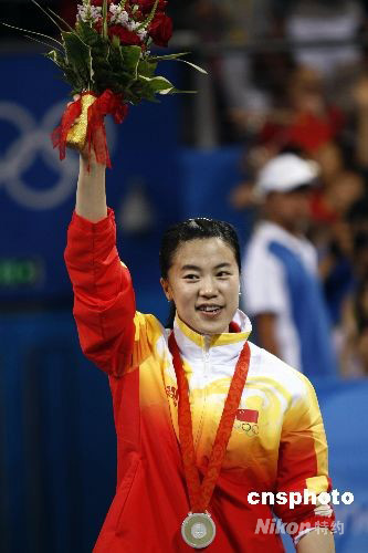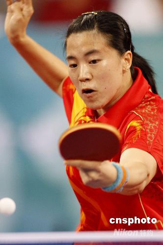8月22日晚,在北京大學(xué)體育館進(jìn)行的北京奧運(yùn)會(huì)乒乓球女子單打決賽中,中國乒乓球老將王楠以1-4不敵自己的隊(duì)友張怡寧獲得亞軍。 中新社發(fā) 盛佳鵬 攝