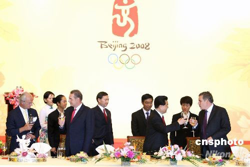 8月24日,中國(guó)國(guó)家主席胡錦濤和夫人劉永清在北京釣魚(yú)臺(tái)國(guó)賓館舉行宴會(huì),款待前來(lái)出席北京奧運(yùn)會(huì)閉幕式的國(guó)際貴賓。 中新社發(fā) 廖文靜 攝