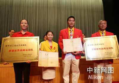 浙江軍團(tuán)取得如此優(yōu)秀的成績,浙江省委、省政府決定獎(jiǎng)勵(lì)奧運(yùn)冠軍江鈺源、孟關(guān)良人民幣六十萬元,并分別授予浙江省功勛運(yùn)動員稱號;獎(jiǎng)勵(lì)銀牌選手朱啟南、楊雨、湯景之、蔡彤彤人民幣三十五萬元,并授予一等功運(yùn)動員稱號;獎(jiǎng)勵(lì)銅牌獲得者周蘇紅人民幣二十萬元,并授予二等功運(yùn)動員。浙江女子體操隊(duì)、浙江皮劃艇隊(duì)獲得省“勇攀世界高峰運(yùn)動隊(duì)”稱號。