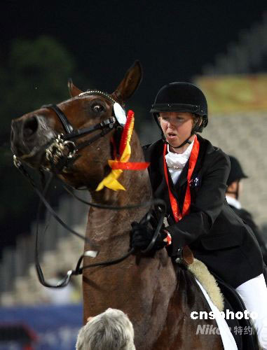 九月八日晚,在香港殘奧馬術(shù)“盛裝舞步團(tuán)體賽”賽中,澳大利亞選手喬治婭·布魯斯策騎“薩魯特”展示實(shí)力,獲得六十八點(diǎn)二五八分。為期五天的北京殘奧委會(huì)馬術(shù)項(xiàng)目,有來(lái)自二十八個(gè)國(guó)家和地區(qū)的七十三名選手及七十一匹參賽馬匹將角逐十一枚金牌,參賽國(guó)家和地區(qū)數(shù)目、選手和馬匹數(shù)目都創(chuàng)歷史記錄。中新社發(fā) 洪少葵 攝