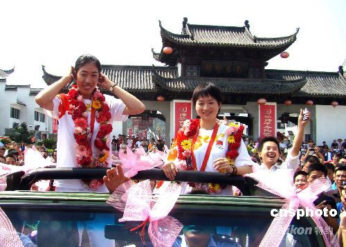 圖:奧運冠軍吳靜鈺、金紫薇載譽回鄉(xiāng)
