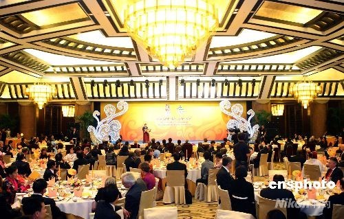 9月19日晚,中國(guó)外交部與北京奧組委在北京釣魚(yú)臺(tái)國(guó)賓館舉行答謝宴會(huì),邀請(qǐng)各國(guó)駐華使節(jié)和國(guó)際組織駐華代表夫婦出席,感謝國(guó)際社會(huì)對(duì)北京奧運(yùn)會(huì)和殘奧會(huì)工作的支持。中新社發(fā) 廖文靜 攝