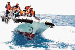 清晨起航,不久就到了東門礁附近海面。