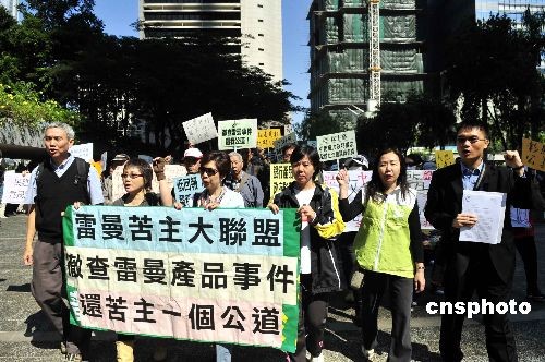 圖:雷曼苦主立法會(huì)門(mén)外表達(dá)訴求