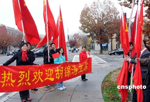 華盛頓華僑華人留學(xué)生迎接胡錦濤主席