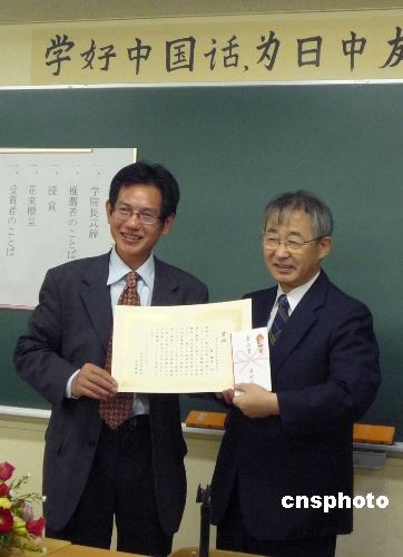 圖:日中學(xué)院首次為旅日華人頒發(fā)倉石獎
