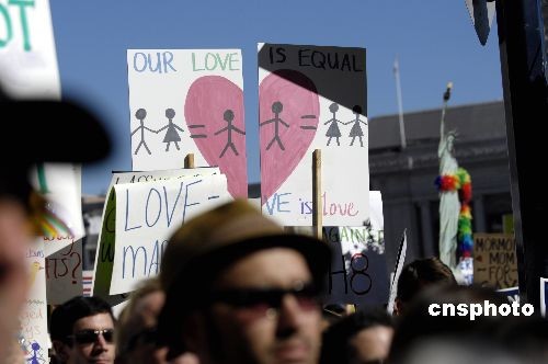 圖:舊金山舉行集會抗議加州通過禁止同性戀結(jié)婚提案