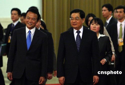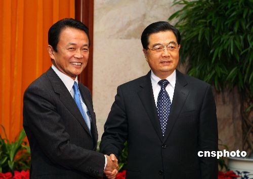 圖:胡錦濤會(huì)見日本首相麻生太郎
