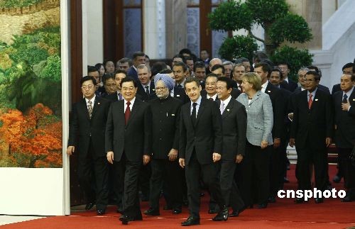 胡錦濤、溫家寶與出席亞歐首腦會(huì)議各國(guó)領(lǐng)導(dǎo)人合影