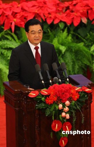 圖:胡錦濤與日本首相麻生太郎出席招待會(huì)