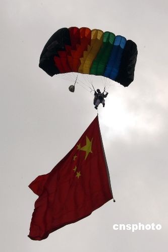 圖:中國空軍跳傘運(yùn)動(dòng)大隊(duì)助興珠海航展
