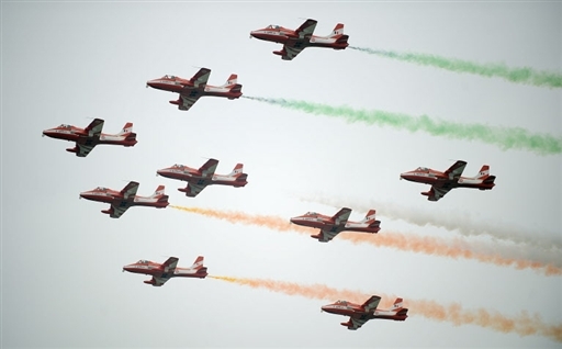 印度"陽光"特技飛行隊航展上進行特技表演