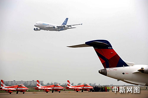 圖:空客A380巨無霸飛機翱翔珠海