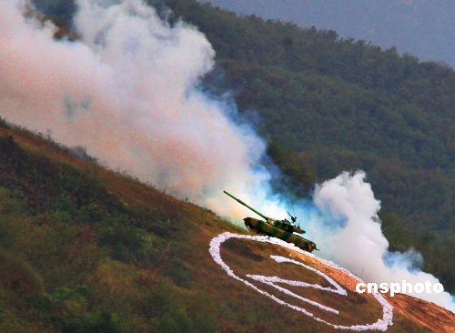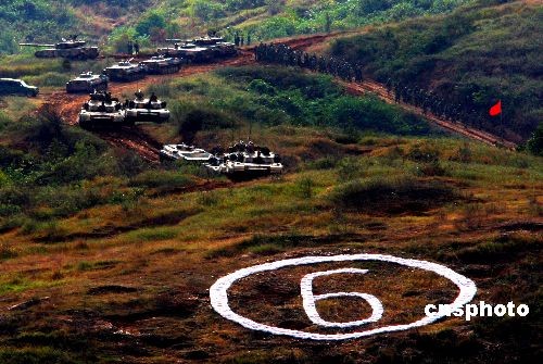 圖:沈陽軍區(qū)萬人千車在草原舉行實(shí)戰(zhàn)演練