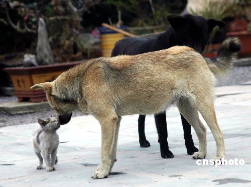 趣圖:安徽巢湖貓狗一家親