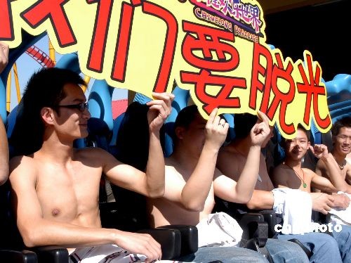 圖:廣州“脫光勇士”挑戰(zhàn)愛(ài)情過(guò)山車(chē)