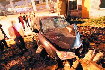 長(zhǎng)沙一輛轎車(chē)撞進(jìn)基建工地內(nèi)