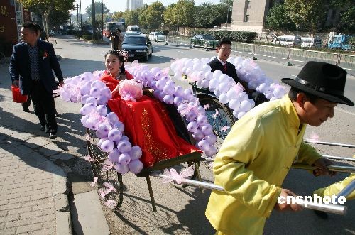 圖:黃包車(chē)婚禮亮相南京