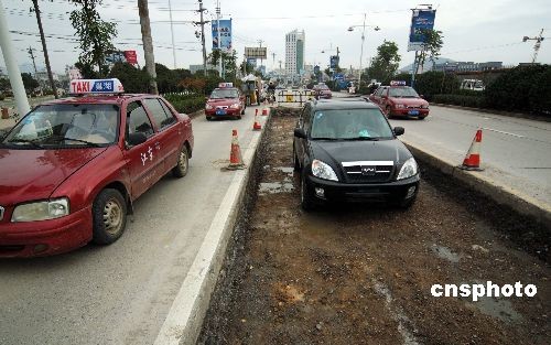 圖:維修警示牌被盜 轎車開(kāi)進(jìn)坑內(nèi)被困
