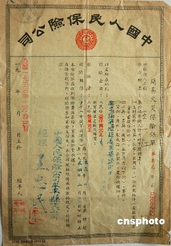 圖:塵封半個(gè)世紀(jì)的保險(xiǎn)單現(xiàn)身山東濱州