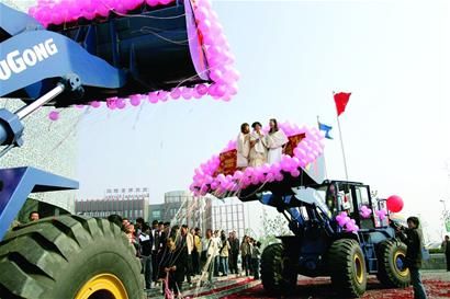 圖:裝載機(jī)當(dāng)花車新型婚禮