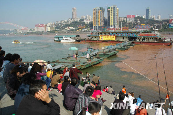 圖:重慶朝天門港兩江水涇渭分明