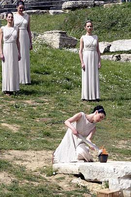 當?shù)貢r間2008年3月24日上午11時48分,北京奧運圣火在古奧林匹克遺址點燃。在圣火采集儀式開始前,慕名而來的人們已經(jīng)率先收獲兩個驚喜:一是被預報可能出現(xiàn)陰雨天氣的奧林匹亞,整個上午都是艷陽高照;二是希臘總統(tǒng)帕普利亞斯親臨現(xiàn)場,而在此之前,希臘總統(tǒng)只在二00四年出席過在本國舉行的雅典奧運會圣火采集儀式。 。