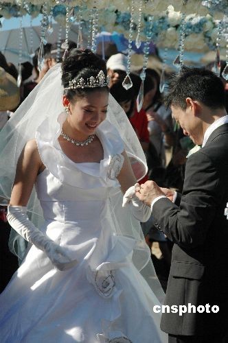 圖:楊威楊云互為對(duì)方佩戴新婚戒指