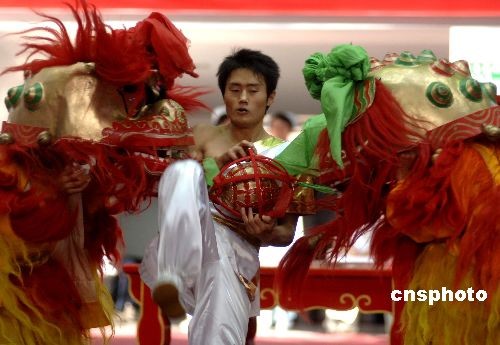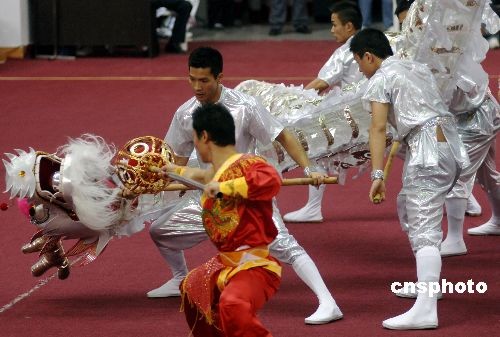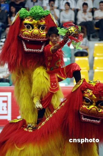 圖:第六屆農(nóng)運會上演精彩紛呈的舞獅賽