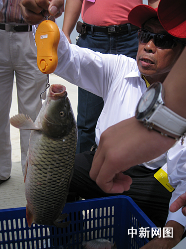 圖:農(nóng)運會釣魚比賽 福建選手收獲大魚