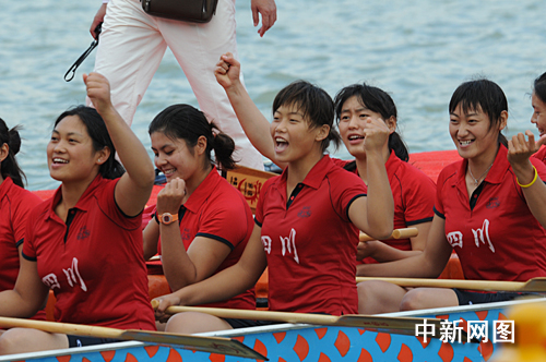 組圖:農(nóng)運會龍舟競速 四川女隊笑容燦爛
