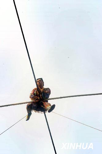 圖:阿迪力侄子高空走鋼絲抱憾失敗